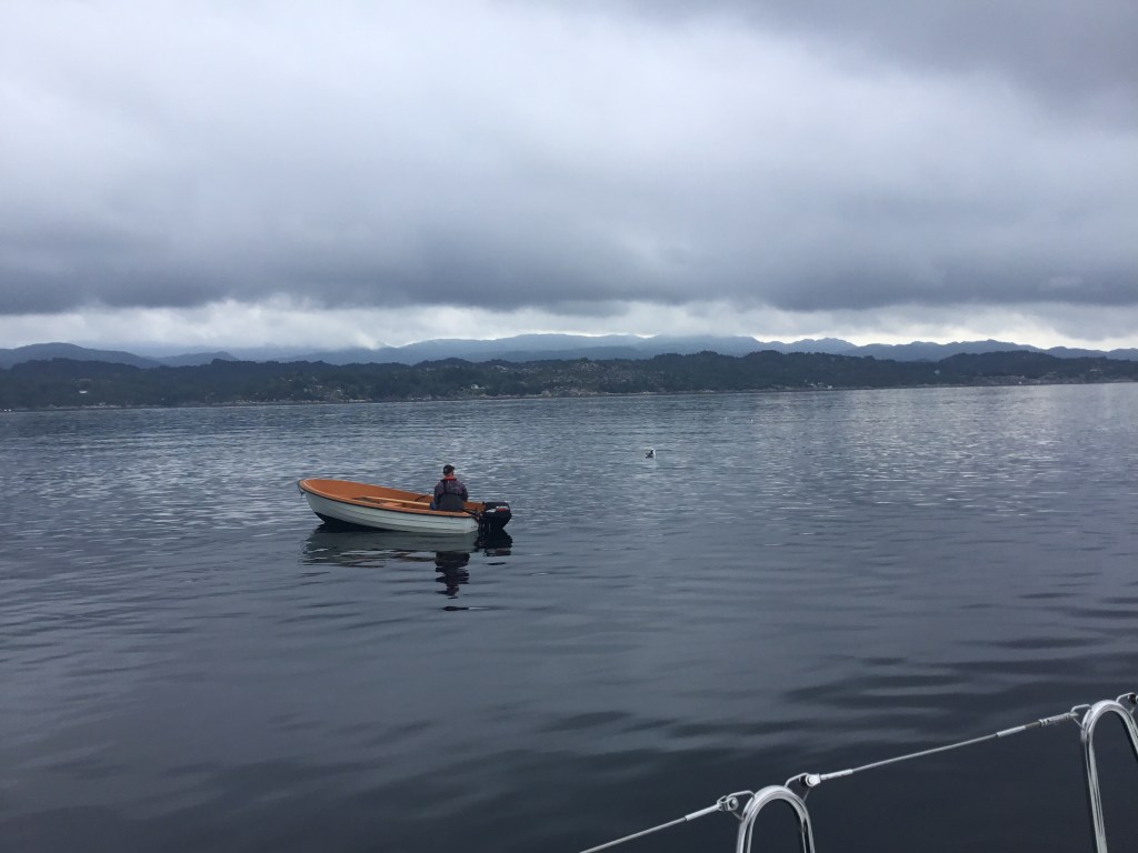 Vi hadde noen flotte opplevelser på Espevær i fjor så her har vi lyst en tur innom igjen. Lite vind i dag også så dårlig med seiling. En god time før vi kon fram fikk vi noen kraftige regnbyger og ganske redusert sikt. Men etterhvert ble været bedre og sola tittet fram igjen. Skikkelig lummert da vi kom fram så nå er det bare å kvitte seg med stilongs og seiltøy å få på seg shortsen igjen.