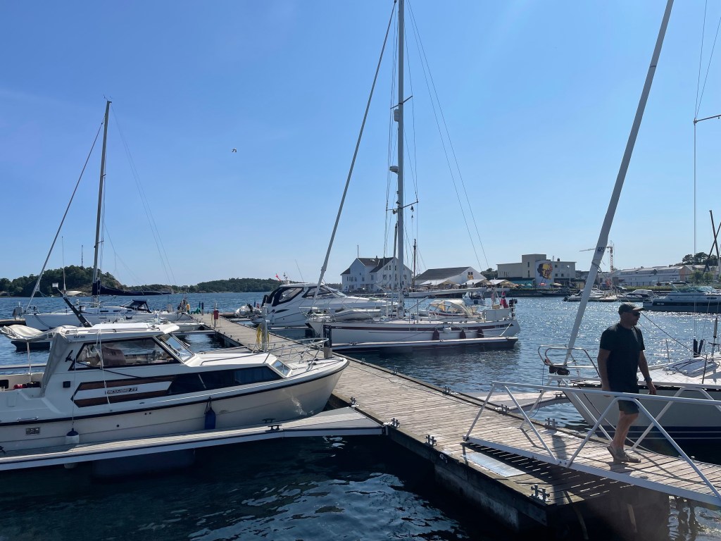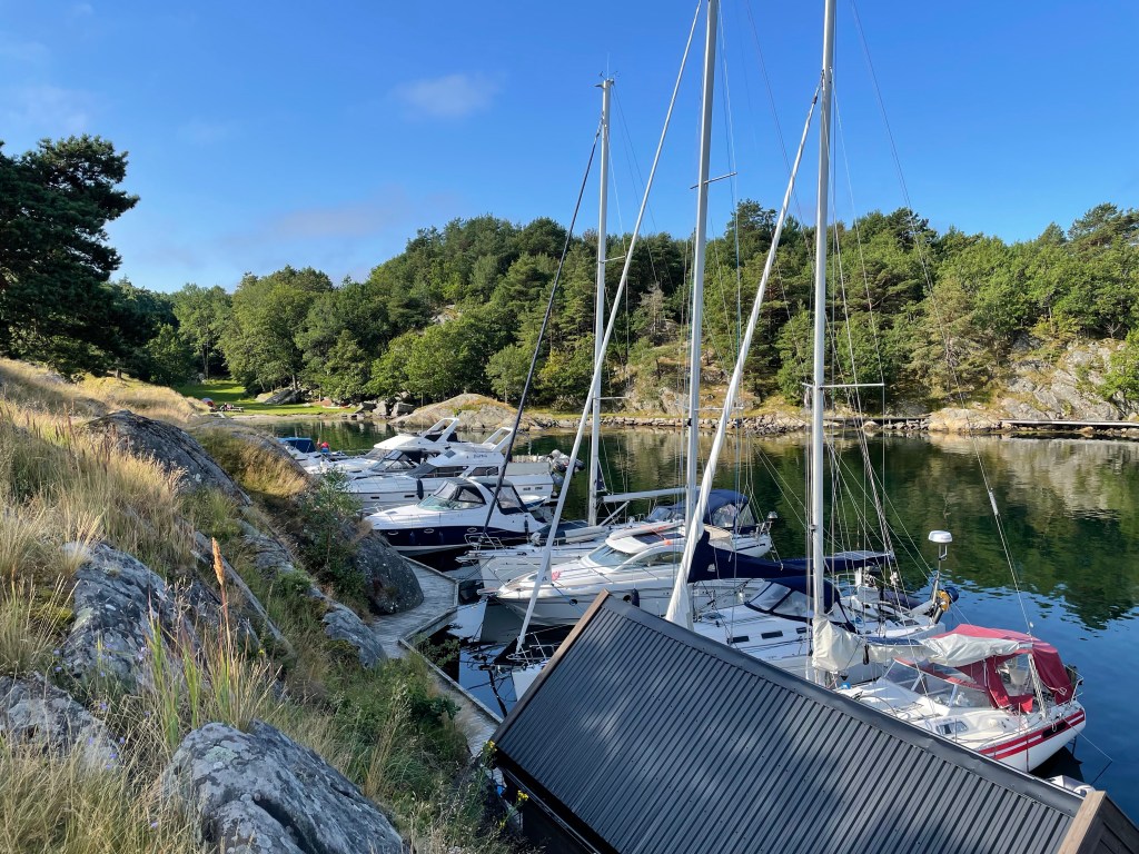 Sommersesongen er på hell i Grimstad. Veldig lite båt i gjestehavnen, og restauranten har oppslag på døra med stengt, og takk for i år. Dette var litt overraskende. Atter en fin dag på sjøen med sol og litt for lite vind.