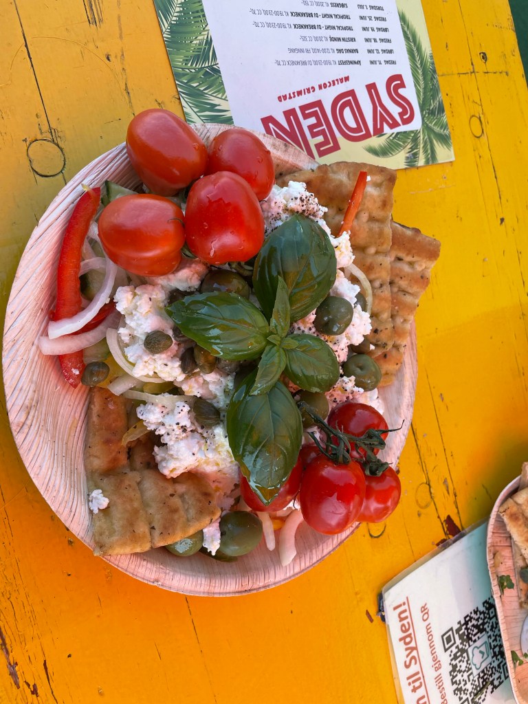 Ikke noe stress med å komme seg tidlig avgårde i dag så det ble avgang utpå formiddagen en gang. Litt roligere vindforhold, men en del skvlalpesjø etter de siste dagers vind. Godt med plass i Mandal. Vi hadde gledet oss til et besøk hos fiskehandleren på brygga og middag på taket men de hadde flyttet. Nå var det et bakeriutsalg her i stedet. Middag på taket ble det allikevel, men det var ikke det samme som i fjor.
