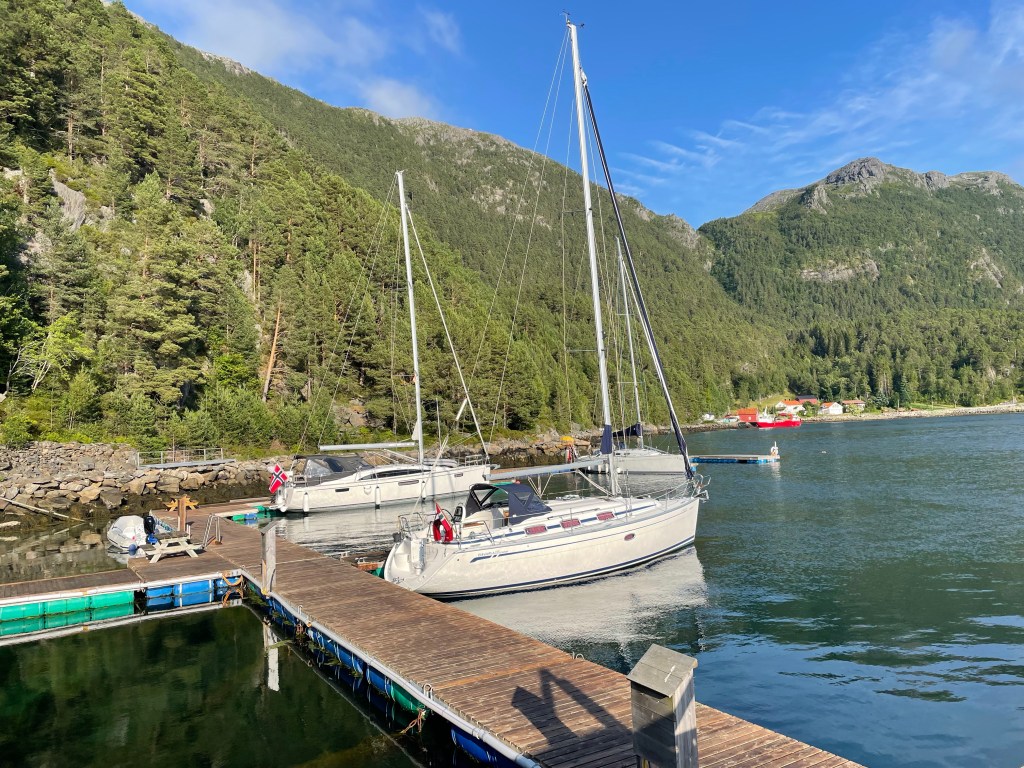 Godt med plass på bryggene på Korsholmen. Grunt for seilbåter lengst mot syd så vi fant en plass helt i andre enden.