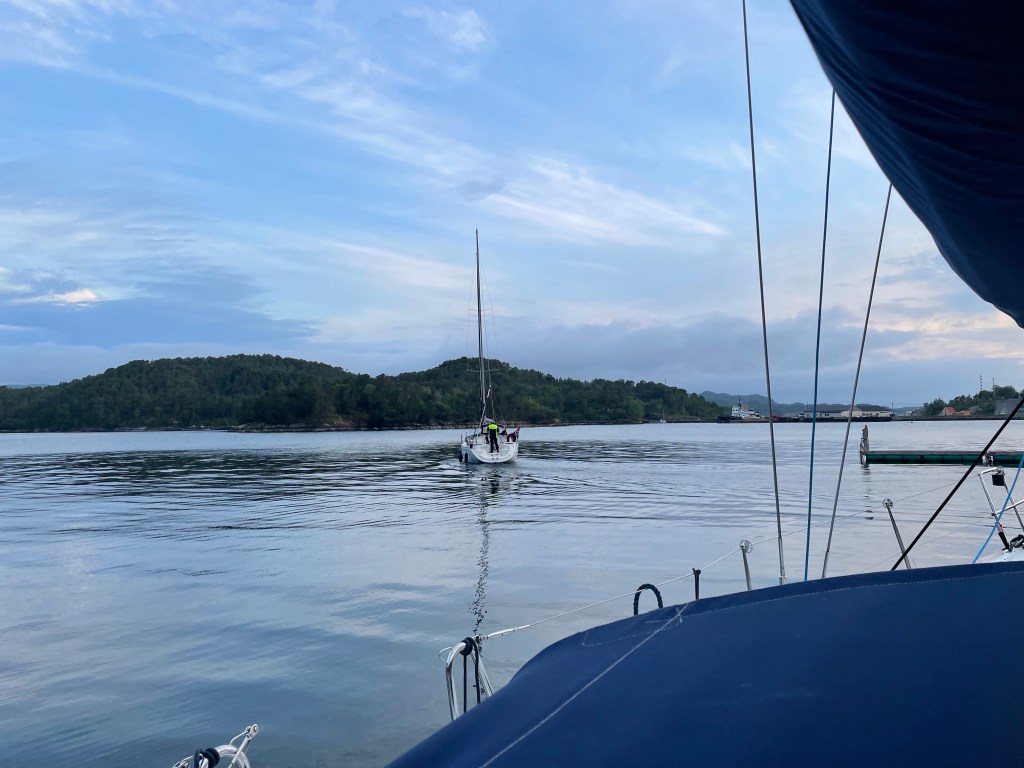 Korsholmen fant vi i en av havneguidene vi har i båten så da blir det dagens mål. Spennende med et nytt sted. Så da var det opp i 06:00 tiden for å komme seg avgårde. Grått og disig vær og nesten helt vindstille. Til tross for gråværet er temperaturen slett ikke verst. Innseilingen til Korssund fra nord er ganske trang og utfordrende. Det er også et kabelspenn her hvor høyden ikke er markert på kartet. Her er det bare å ta det helt med ro. Inn fra syd kommer vi ikke for bruen er for lav. Flott plass med flytebrygger. Men det er en ganske stor kontrast i forhold til Knutholmen hvor det var mye liv og røre. Ikke det at det ikke er liv her også. En gjeng med trekkspillere satt utenfor butikken og dro noen viser, men «festen» var ferdig ganske tidlig på ettermiddagen. Etter det var det ganske stille. En liten fiskestopp underveis resulterte i en sei som ble brukt som agn i krabbeteinene. Disse ble satt utenfor innløpet og det blir spennende å se i morgen om det blir noe fangst.
