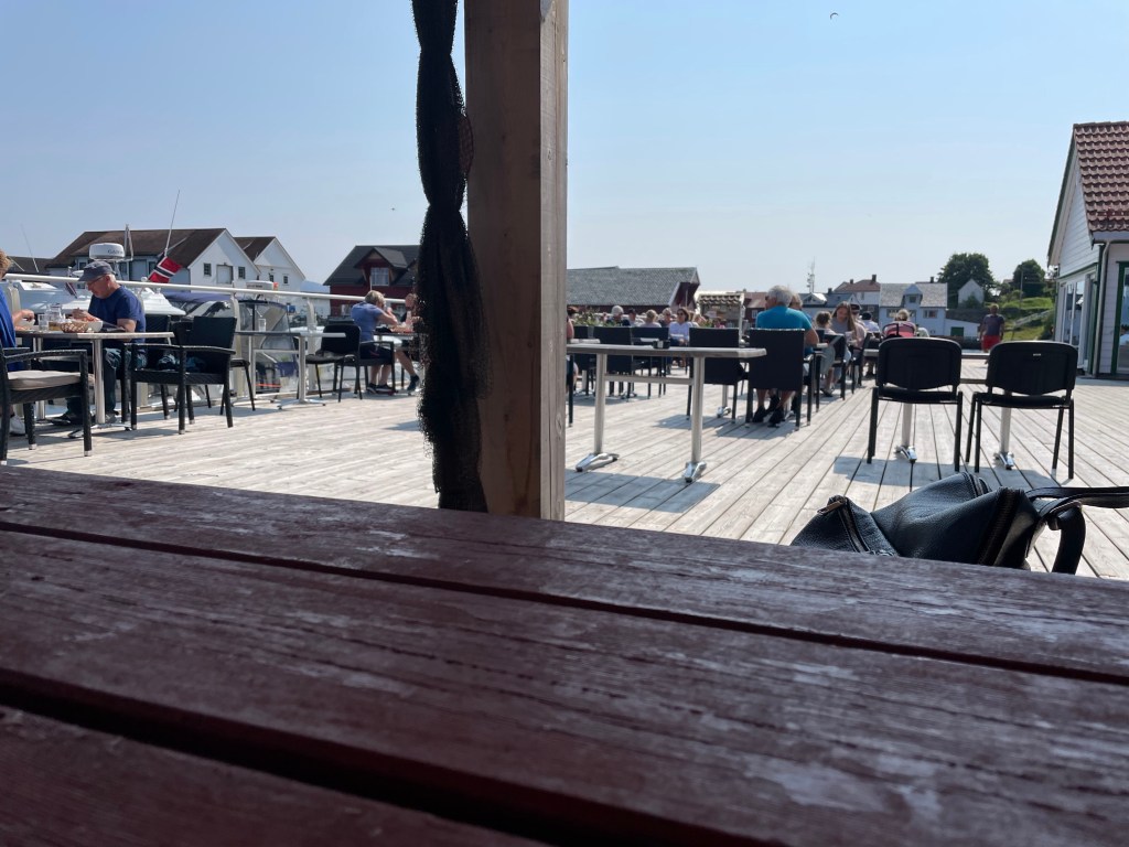 Flott anlegg på Oldenborg. Fiskesuppe og hvitvin.