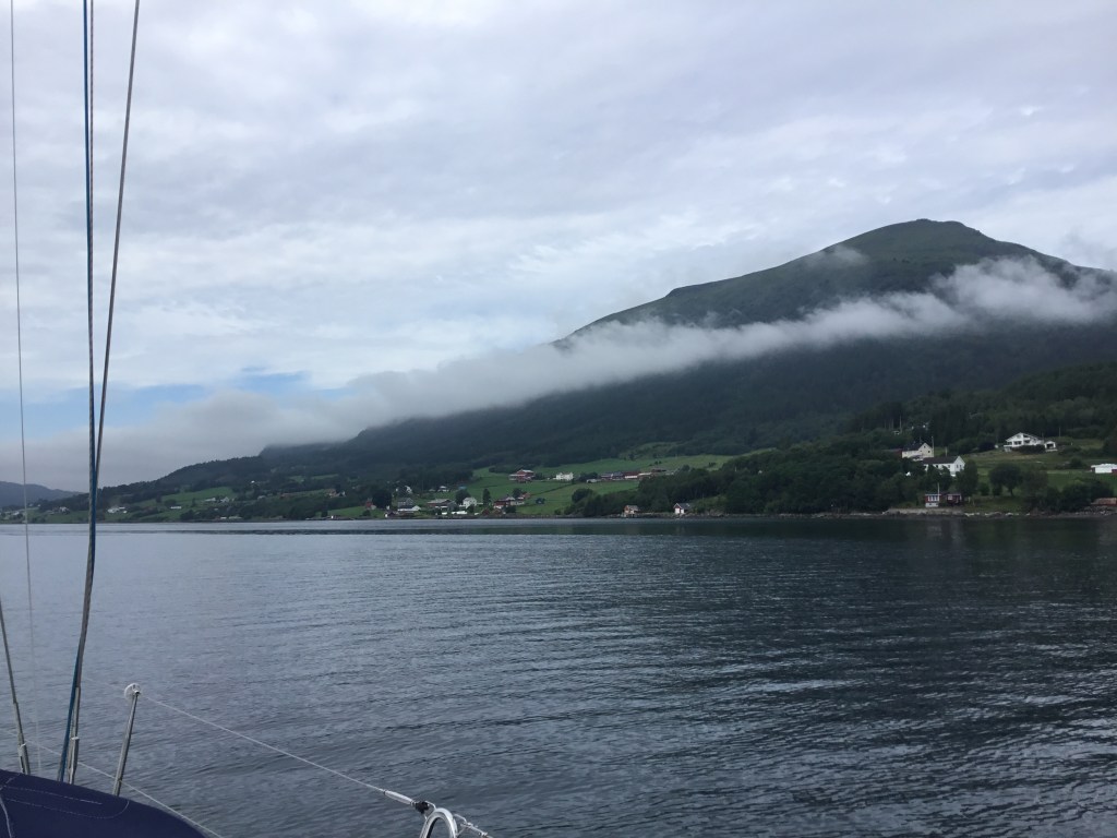 Innseilingen til Bud. Sjøen har roet seg ned.