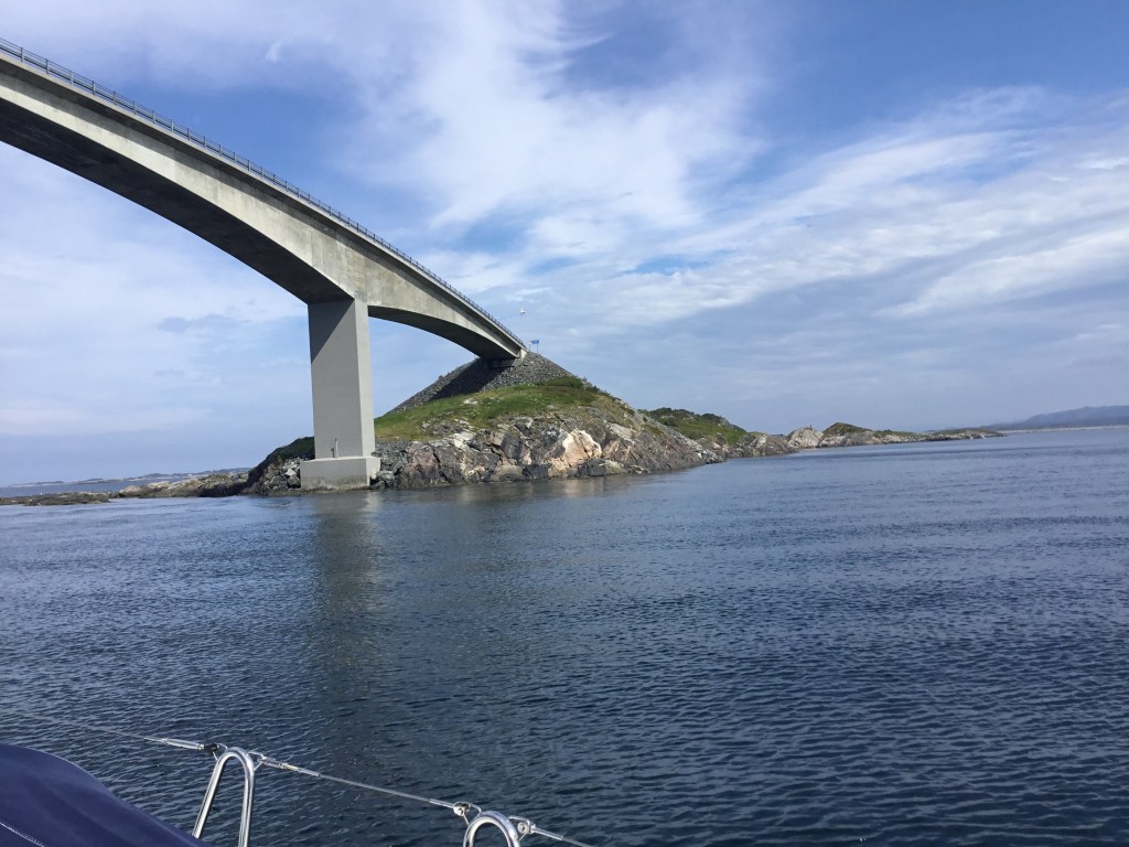 Storseisundet bru. Tror dette er den eneste brua på Atlanterhavsveien vi kommer under. Mange av de andre bruene er rundt 16-meter høye.