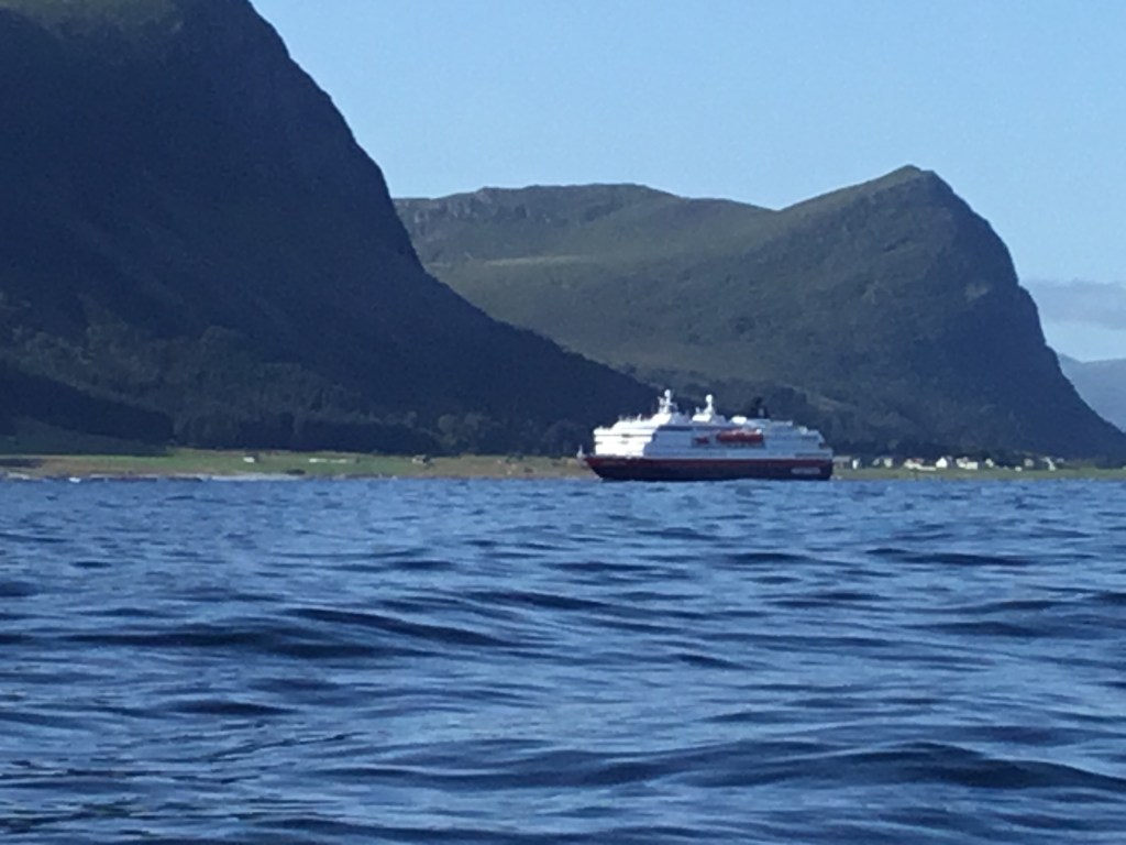Mere fjell og båt. Hurtigruta på vei nordover.